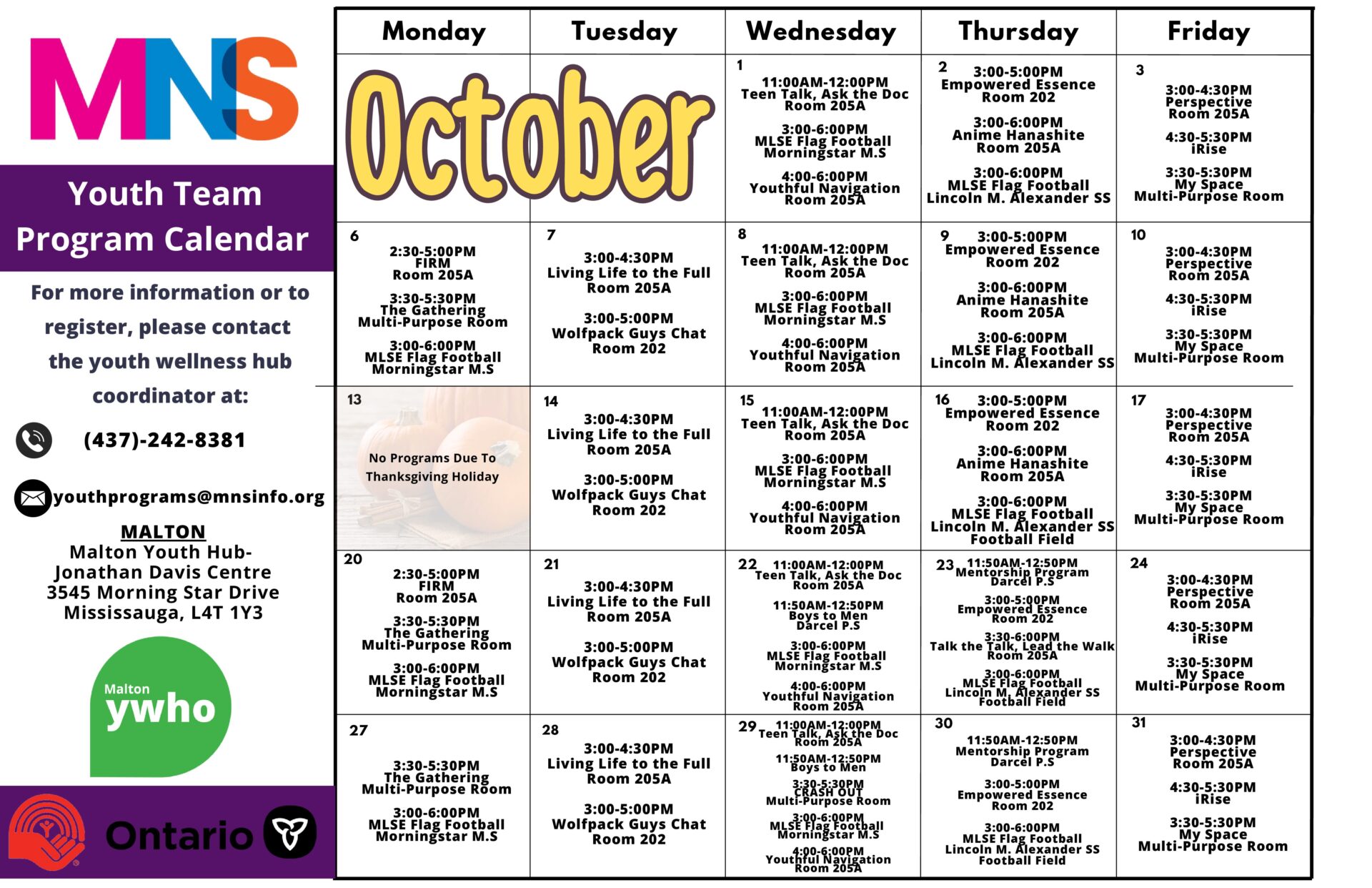 With the goal of removing barriers to the access of support for youth in our community, My Neighbourhood Services offers wrap-around service delivery through our four youth programs to provide comprehensive youth-driven programming.
